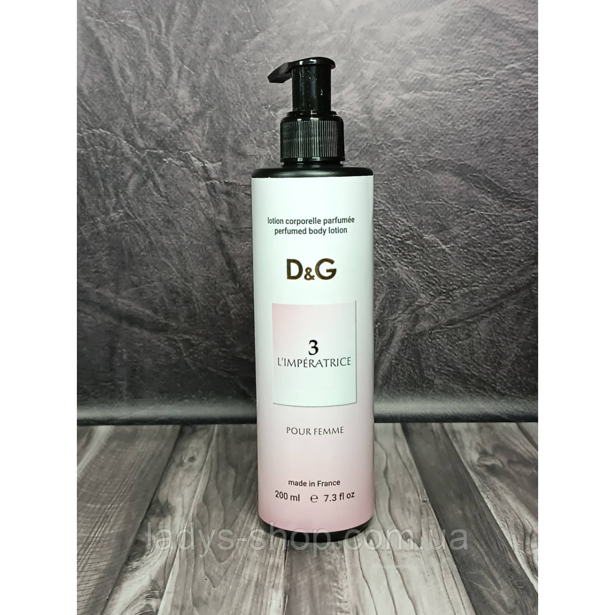 Ефект після використання: Відчуйте легкий охолоджувальний ефект. Парфумований лосьйон для тіла Dolce&Gabbana 3 L“Imperatrice Brand підкреслює індивідуальністьрозкриває характер і надає особливої чарівності.