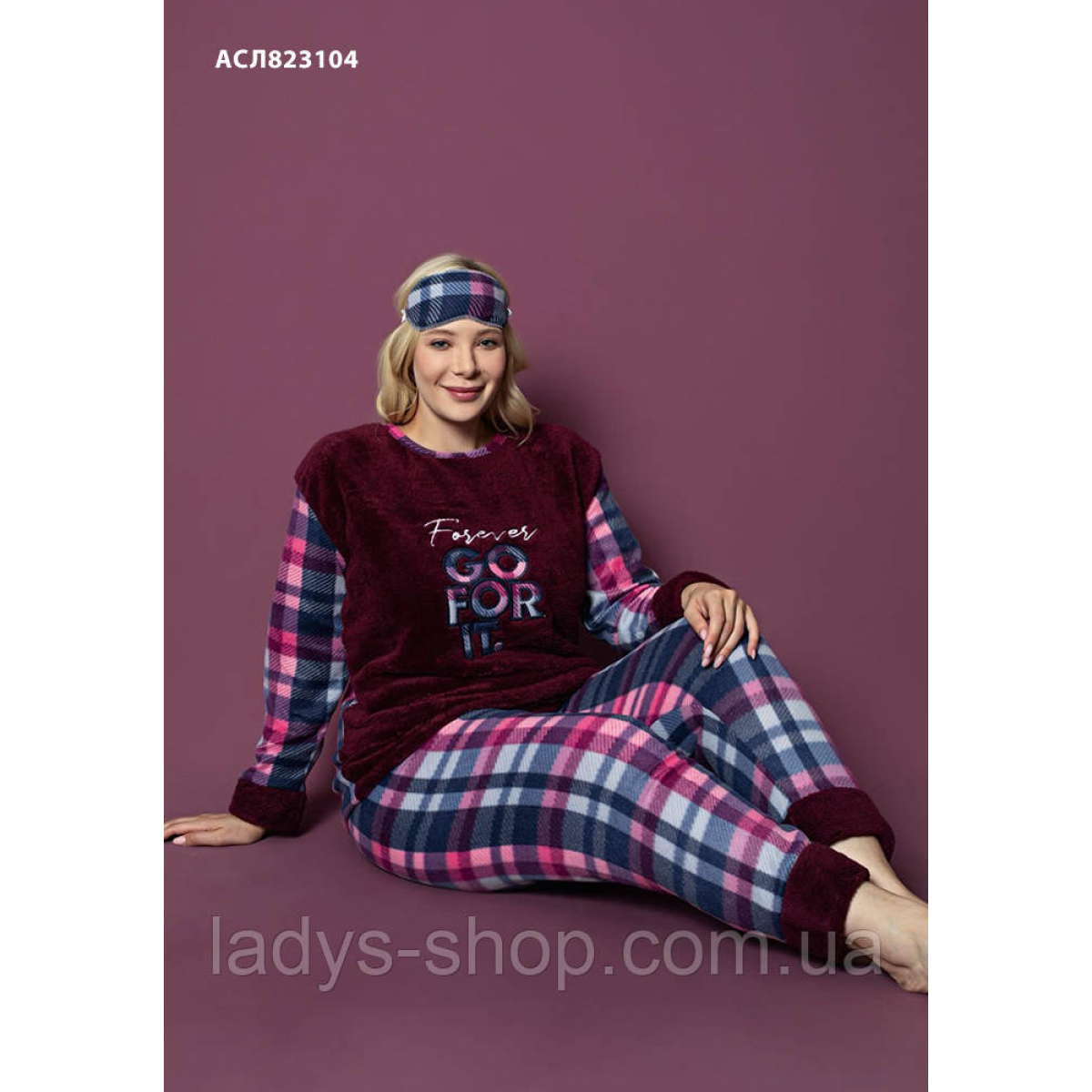 Жіноча тепла піжама, штани + лонгслів манжет + маска софт + фліс 4XL