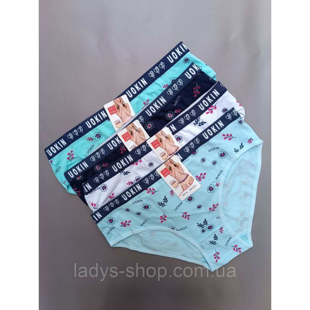 Набір жіночих хб трусиків на середній посадці. Набір 4 шт. Розмір 48 (XL)