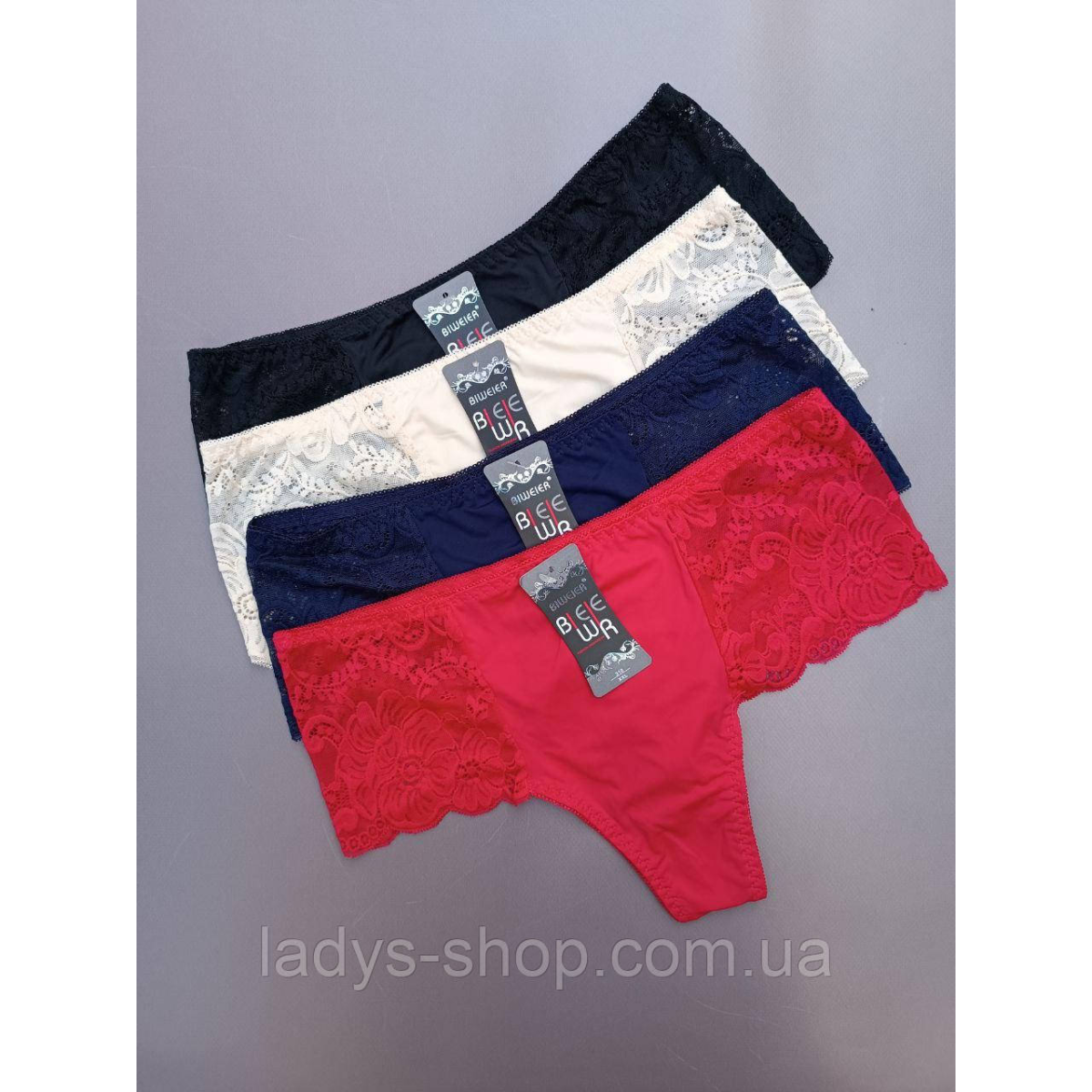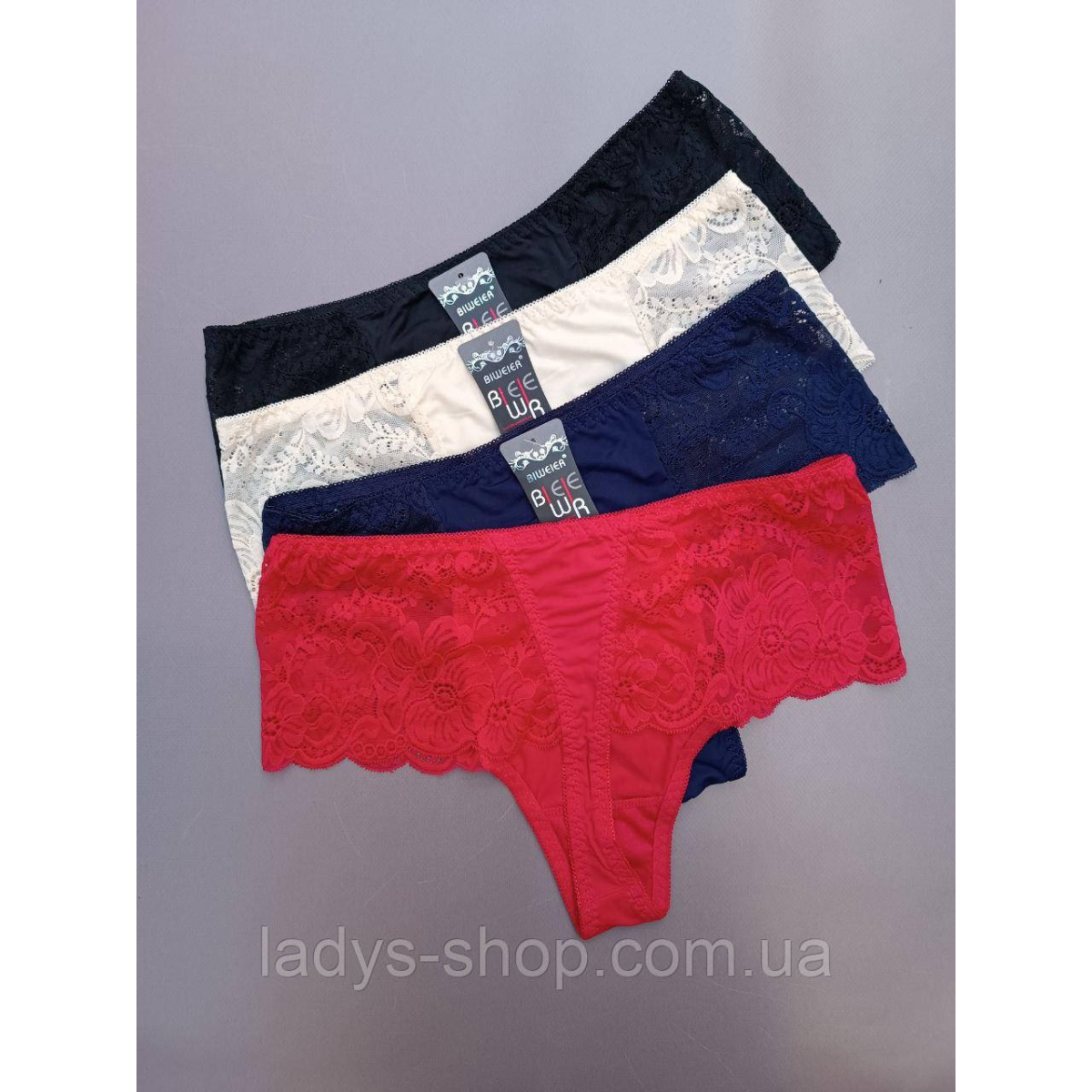 Набор жіночих мереживних трусиків-бікіні на високій посадці. В наборі 4 шт. Розмір 50 (xl)
