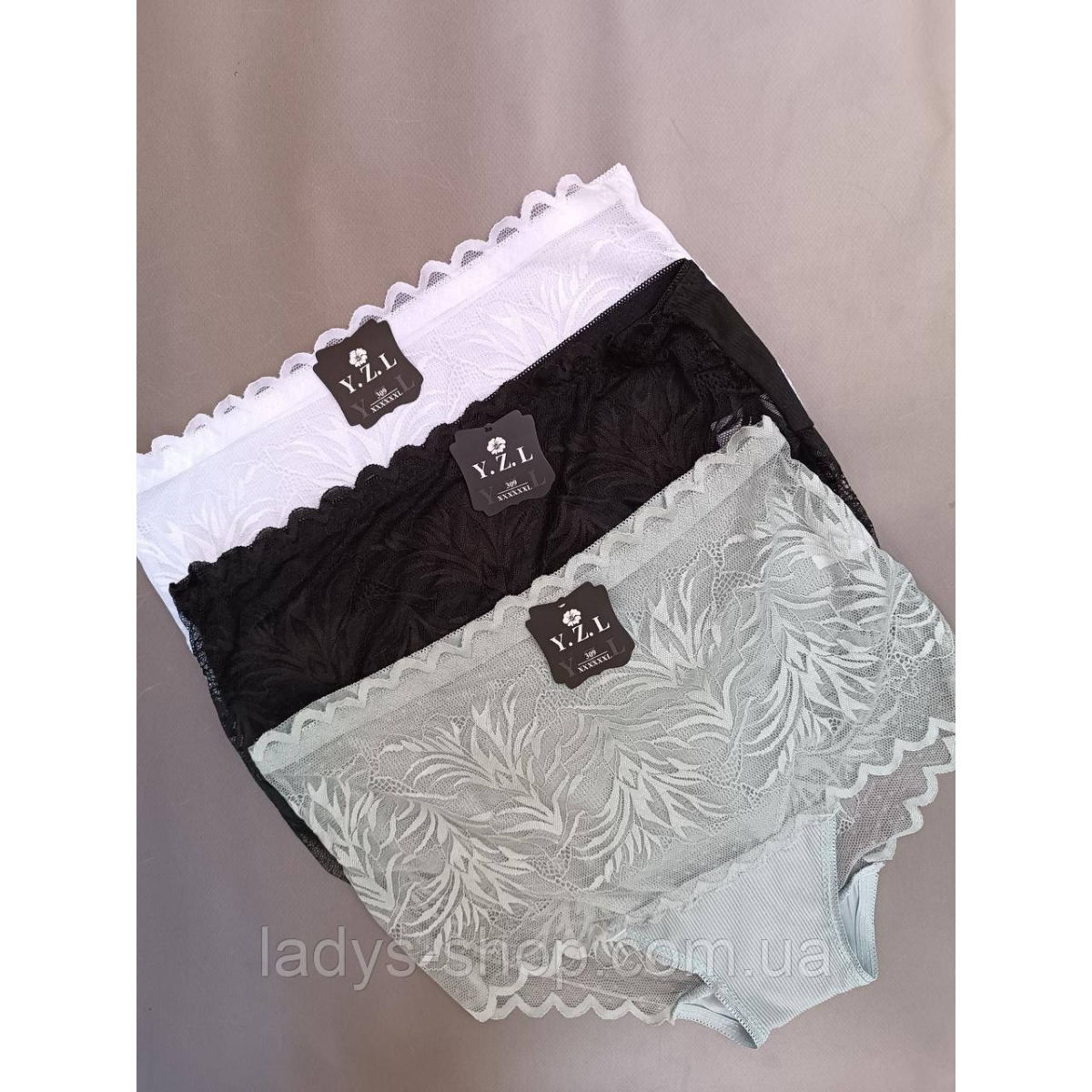Набір жіночих мереживних трусиків на високій посадці. В наборі 3 шт. Розмір 54-56