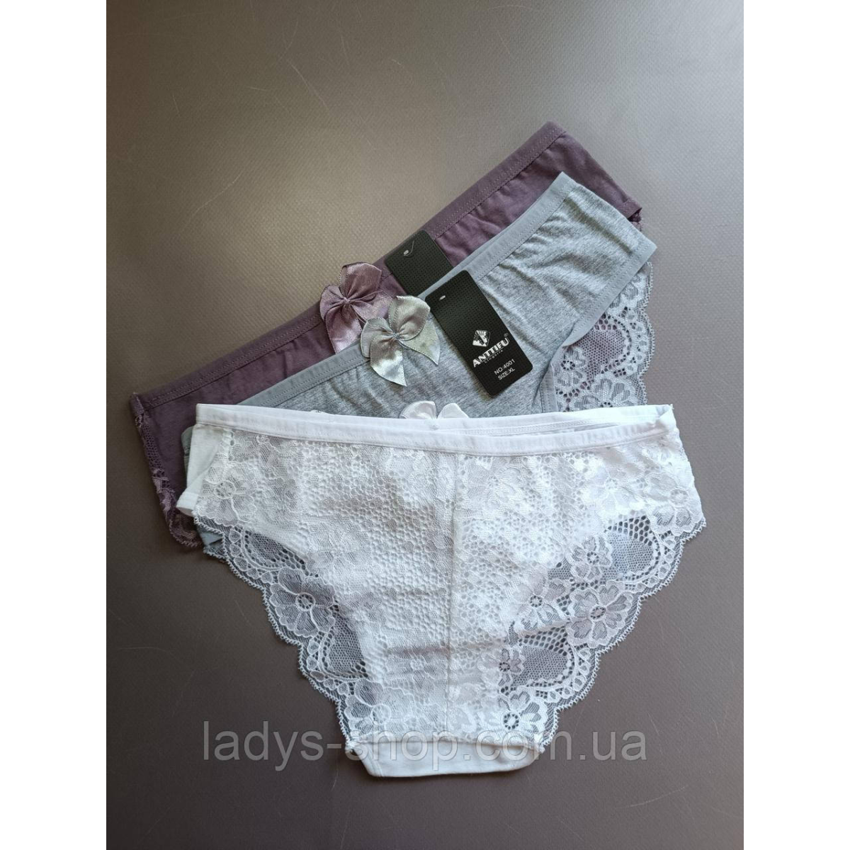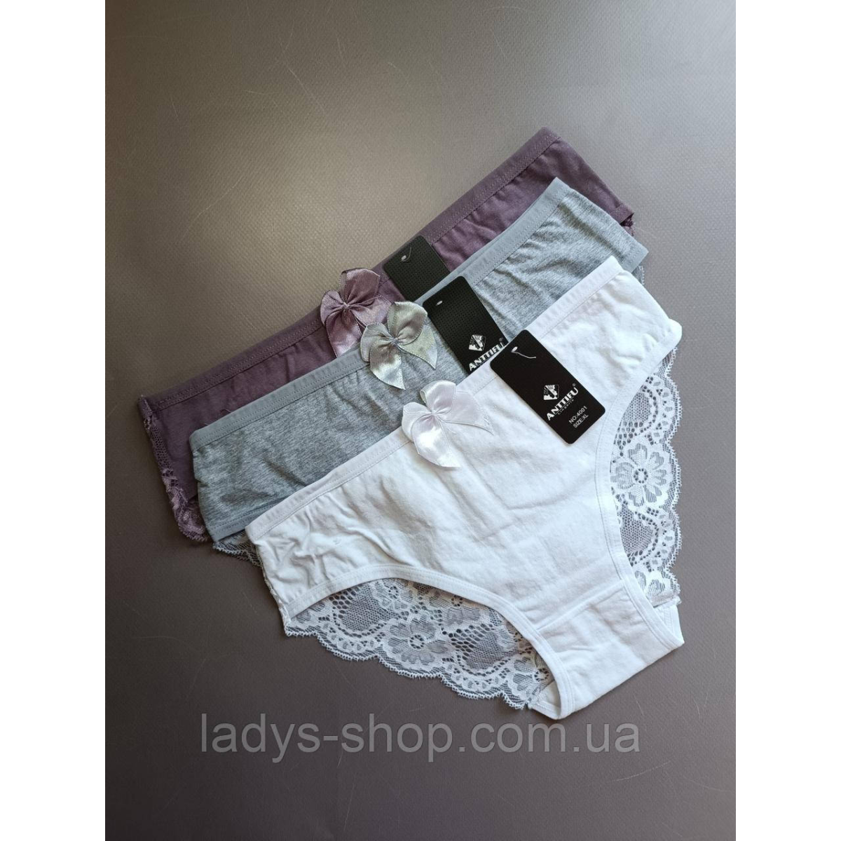 Набір жіночих мереживних трусиків на середній посадці. Розмір 46. Набір 3 шт.