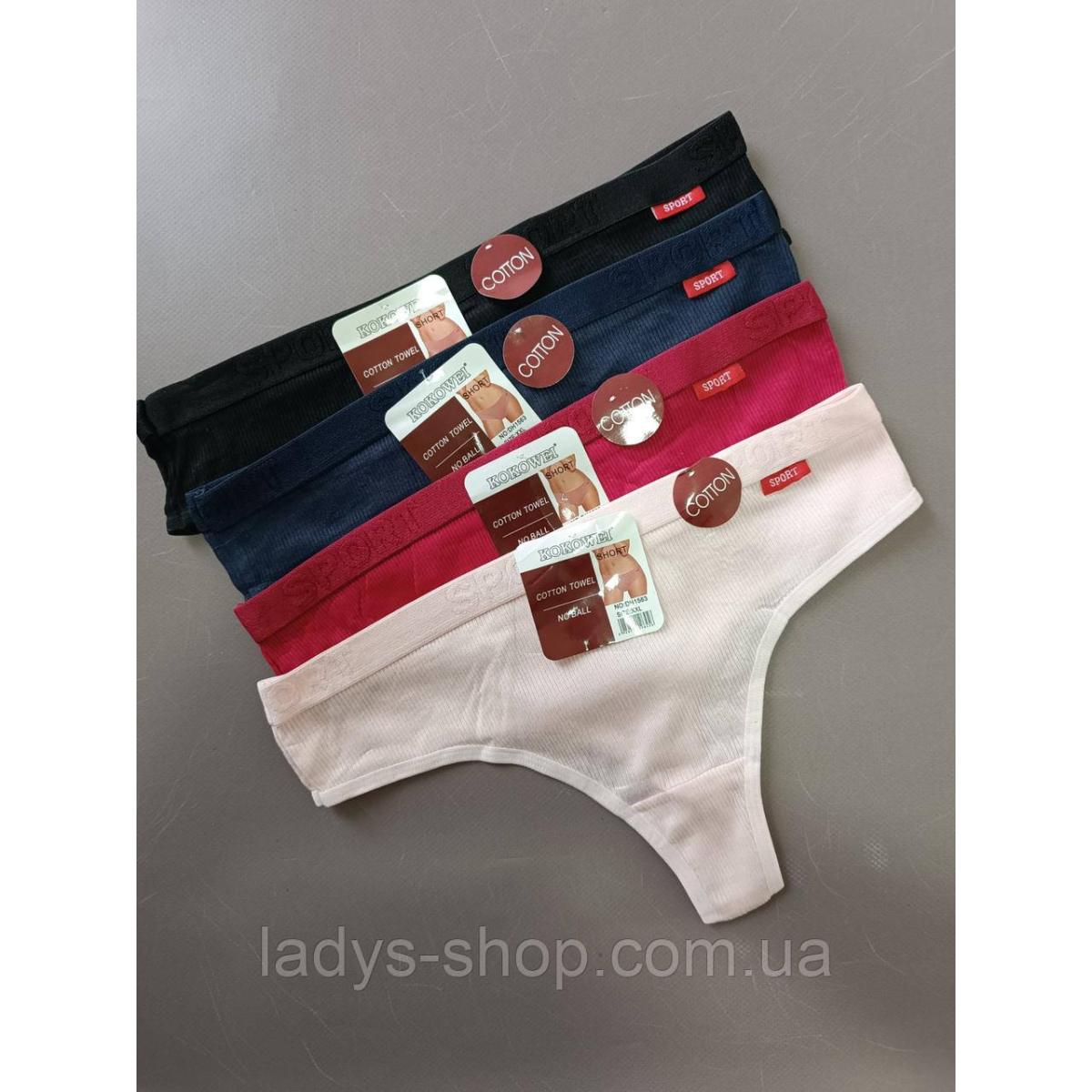 Набір жіночих хб трусиків на середній посадці “Рубчик“ Набір 4 шт. Розмір 50 (XXL)